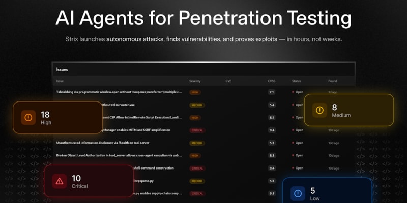 Strix is an open-source AI penetration testing agent that automatically discovers, validates, and reports security vulnerabilities in applications. With 2,000 GitHub stars and 8,000 downloads in its first month, it's being adopted by Fortune 500 security teams, top bug bounty hunters, and auditing firms. The tool generates