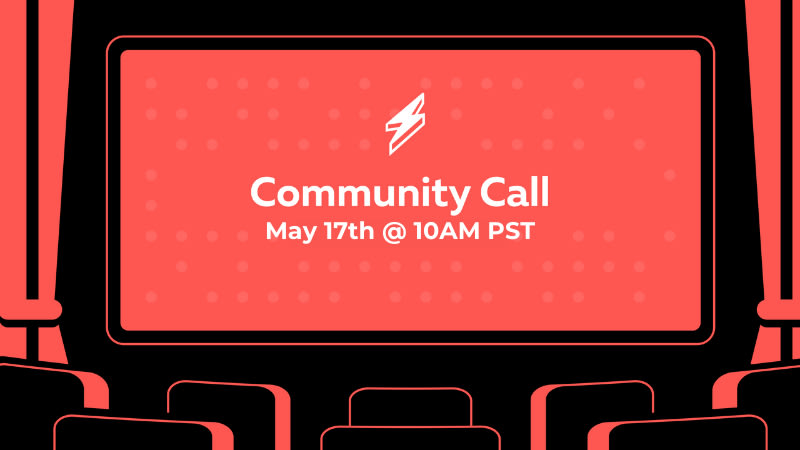 A community call announcement covering serverless application structuring best practices and a case study from Purple Technology. Topics include Git repository organization for multiple services, determining appropriate service size, inter-service communication patterns, and shared infrastructure management. Purple Technology