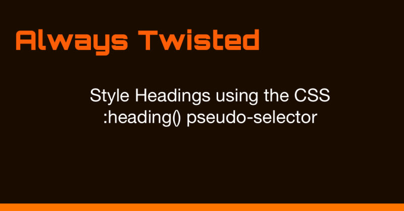 The Current ApproachEnter :headingTargeting Specific Heading LevelsSome Possible Use CasesComposing :heading With Other SelectorsBrowser Support and TestingA Cleaner Design SystemWrapping UpSort:
