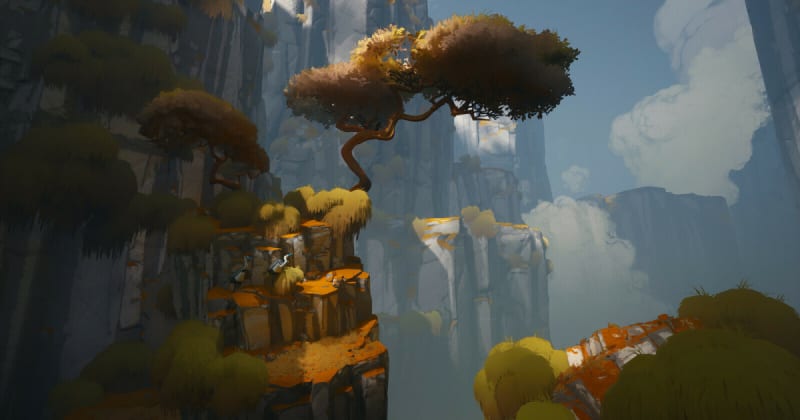 3D artist Tyler Smith unveiled a stylized Unreal Engine 5 scene called 'Wind on the Clifftops,' depicting an Asian high-cliff landscape built entirely from a single rock asset. The project also incorporates a gameplay area inspired by Nintendo 64-era level design, featuring platforms over a fog-covered abyss. Tools used include