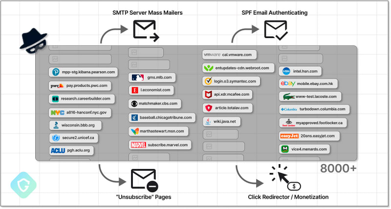 Guardio Labs uncovers a sprawling campaign of subdomain hijacking, compromising over 8,000 domains from respected brands. The campaign, known as SubdoMailing, leverages the credibility of these domains to send millions of malicious emails daily. The report highlights the scale of the issue and calls for enhanced domain security.