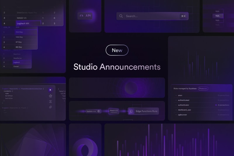 Supabase Studio 2.0 is announced with a ton of new features and enhancements, including Supabase AI for assisted database development, GraphiQL integration, cascade deletes, query performance tool, foreign key selector, improved Postgres roles management, database webhooks support, view table definitions, auto-generated API