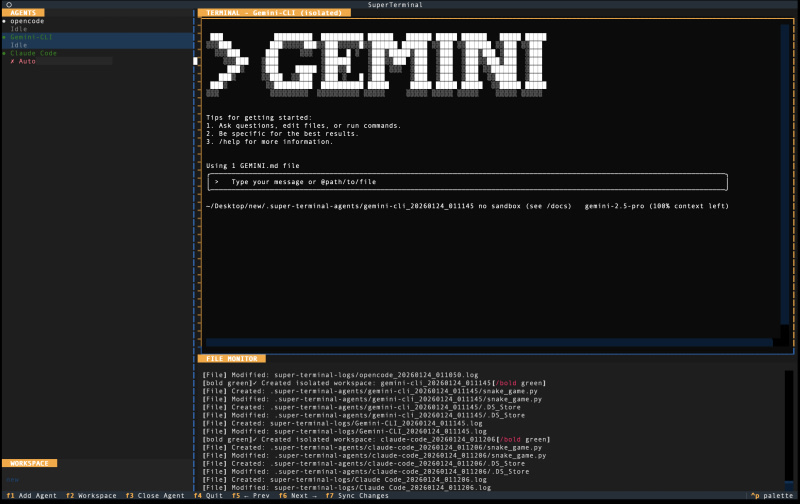 Super Terminal: TUI for Claude Code, Gemini, Opencode and other agents to run in parallel