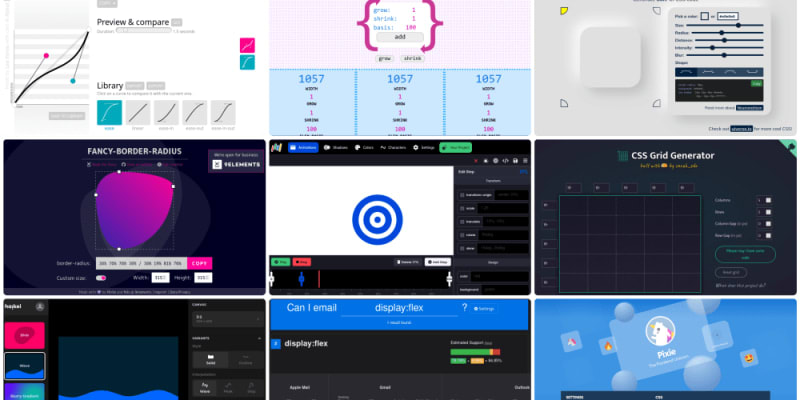 A collection of 70 hand-picked, web-based tools which are actually useful. Each will generate pure CSS without the need for JS or any external libraries. Full credit goes to the authors behind each of these apps (where possible I've linked to their GH/ socials) The collection includes Property Generators - Animations - Backgrounds.