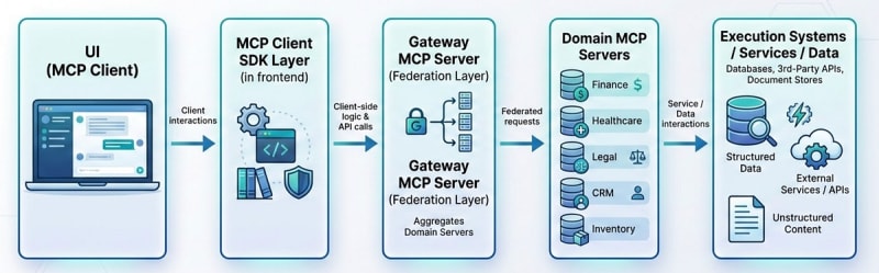 MCP (Model Context Protocol) enables a new architectural pattern where the UI acts as an intelligent orchestration layer rather than a thin presentation layer. An MCP Client UI can discover backend capabilities at runtime, understand tool schemas, invoke tools dynamically based on LLM reasoning, and chain multi-step workflows