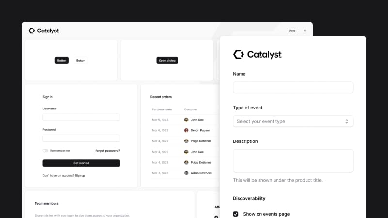 Tailwind CSS Application UI Kit, Catalyst, offers modern UI components built with Tailwind CSS, Headless UI, and React. The components are customizable, easy to use, keyboard accessible, and available in TypeScript and JavaScript. The templates can be purchased individually or with an all-access license, with free updates included.