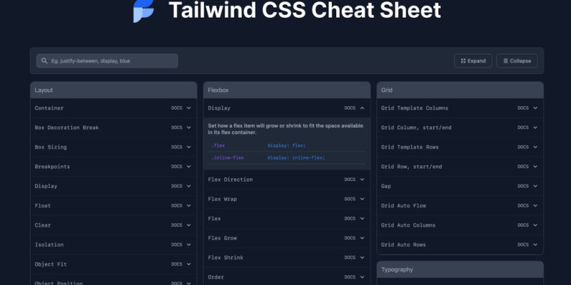 Tailwind CSS Cheat Sheet - Every class name from Tailwind CSS on a single page