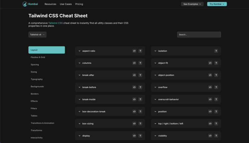 Tailwind CSS Cheat Sheet(v4 and v3)