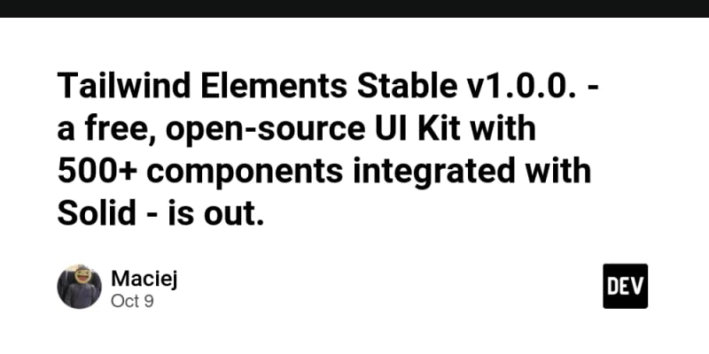 Tailwind Elements Stable v1.0.0 is a free, open-source UI Kit with over 500 components integrated with Solid. It provides easy theming and customization, dark mode, and a Figma design system. The UI Kit is suitable for building SPAs, PWAs, widgets, and integrations on larger projects. It offers various UI components and