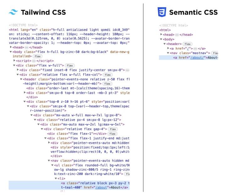 This post compares the differences between Tailwind and Semantic CSS in terms of coding, rendering speed, separation of concerns, and more. It highlights that Semantic CSS is significantly smaller in size, faster in rendering, and allows for loose coupling and reusability.