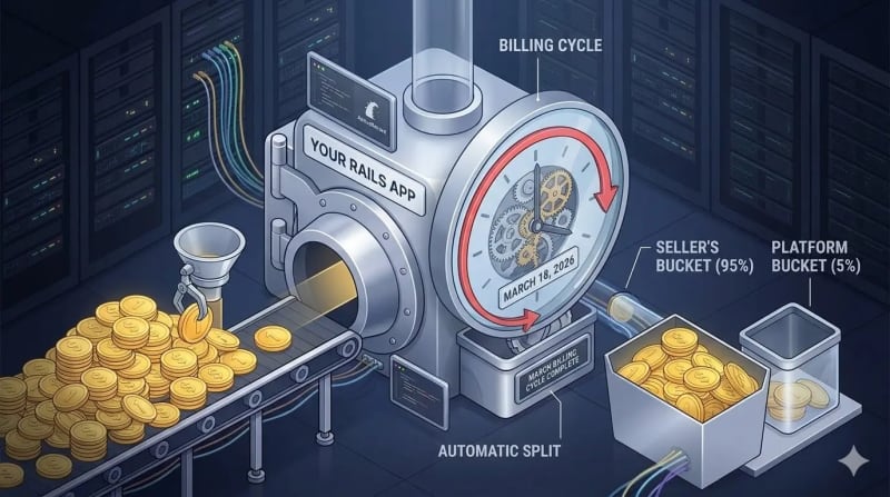 A step-by-step guide to implementing recurring subscription payments with Stripe Connect in a Rails app, covering the key differences from one-time payments. Uses `subscription_data` with `application_fee_percent` and `transfer_data` in a Stripe Checkout session to automatically split monthly charges between a platform and