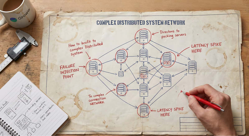 Groww built an internal chaos engineering platform to validate system resilience before high-traffic events like IPO listings. The platform uses a dedicated load-test Kubernetes cluster isolated from production, a traffic replayer that mirrors real production traffic, Argo Workflows as the orchestration control plane, and Chaos
