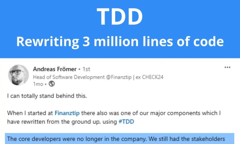 Andreas Frömer, Head of Software Development at Finanztip, successfully used TDD to rewrite a legacy application consisting of 3 million lines of code. Key lessons include starting with system level tests to avoid regression bugs and using feature flags to replace old code while retaining system behavior. The approach