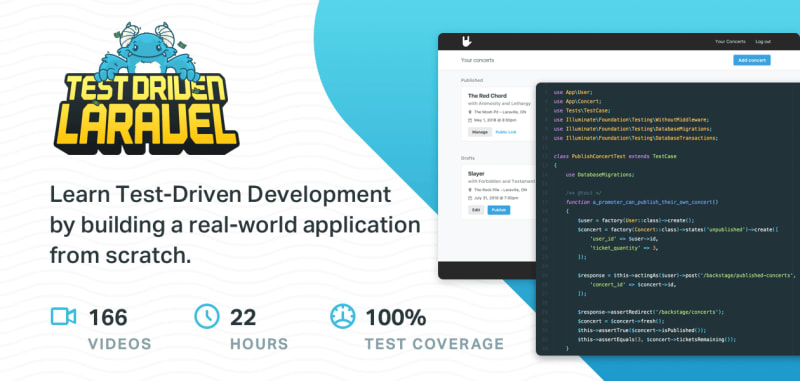 Learn how to build robust Laravel applications using Test-Driven Development (TDD) through a comprehensive 22-hour video course. Gain insights from real-world challenges and develop features for a marketable product, TicketBeast, while covering fundamentals and advanced topics. The course includes practical advice, hands-on