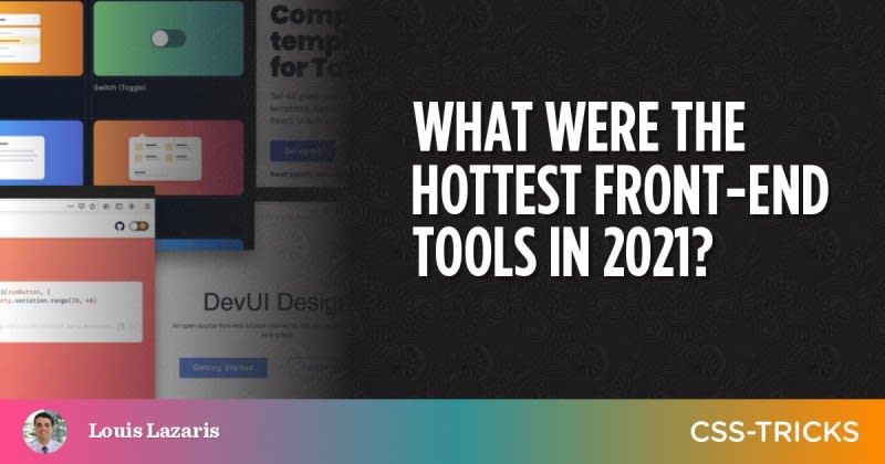 Table of contents60. Open Props59. NextUI58. Dopefolio57. Vizzu56. 10015 Tools55. Snoweb54. Tails53. MapLibre52. SVG Repo51. Animated Backgrounds50. Pico.css49. Coding Fonts48. UI-Neumorphism47. Beautiful CSS Buttons46. Shaper45. Prestige44. HTML.cafe43. Charts.css42. Buttons Generator41. Doodad Pattern Generator40. Kaboom39. Skuawk38. Glassmorphism CSS Generator37. Kalia36. AdminJS35. Pancake34. Mosaic Lite33. Iconduck32. Luxa CSS31. Glitter30. Components AI29. Unicode Arrows28. Type Scale Clamp Generator27. AnimXYZ26. Frontend Toolkit25. colorpalettes.earth24. Uncut23. Lowdefy22. JavaScript Booster21. Layout Patterns20. Baseline Background Remover19. Theatre.js18. Transition.css17. The Component Gallery16. party.js15. Headless UI14. Turbo13. tidy.js12. Tail-Kit11. Tailwind Components10. Pikaday9. HTML Boilerplates8. Whirl7. Riju6. DevUI5. Pollen4. AlterNight3. UIsual2. Supabase UI1. CSS Layout GeneratorWhat were your favorite front-end tools of 2021?36 Comments