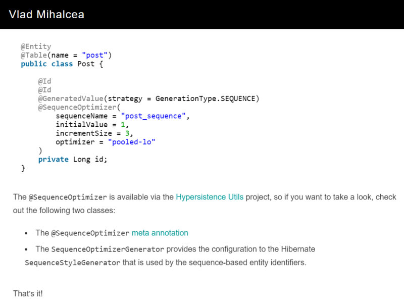 IntroductionHibernate @GenericGenerator annotationHow to map a custom entity identifier generatorHow to configure the `pooled-lo` optimizer without the @GenericGeneratorConclusionSort: