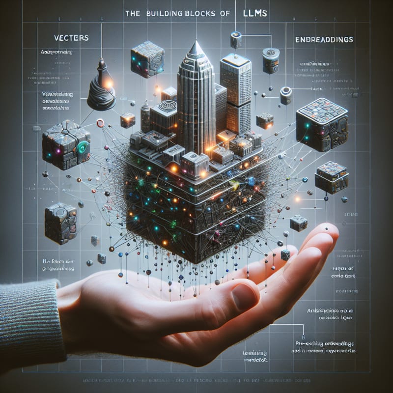 Explore the building blocks of LLMs, including vectors, tokens, and embeddings. Learn how vectors represent language mathematically, how tokens break down language into meaningful units, and how embeddings capture semantic relationships. Discover the applications and challenges of these building blocks and the advancements in NLP.