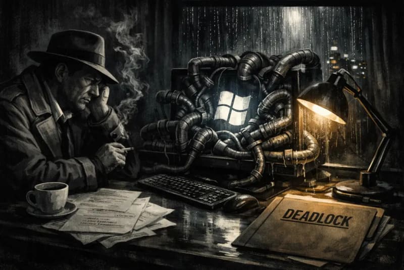 A deep investigation into why Nette Tester's parallel test execution performs dramatically worse on Windows (21.6 seconds) compared to Linux (3 seconds). The root cause is Windows' lack of non-blocking I/O support for anonymous pipes, causing the test runner to freeze when reading from empty pipes. Multiple solutions were