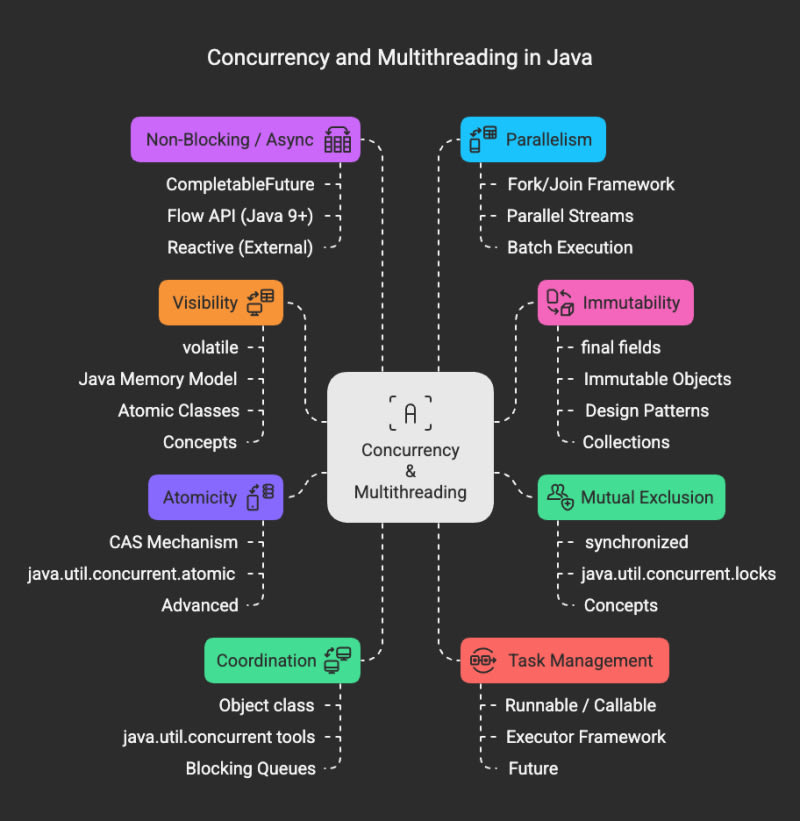 This comprehensive guide aims to equip engineers with the fundamental concepts of concurrency and multithreading, applicable across various programming languages like Java, C++, Rust, Go, Python, and JavaScript. It introduces nine essential pillars—mutual exclusion, visibility, atomicity, coordination, task management,