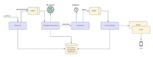 The Consumer Communication Gateway (CCG) is built on top of Docstore, a distributed database built at Uber. It stores the push content along with the metadata (promotion involved, restaurant hours, etc.) into the Push Inbox.