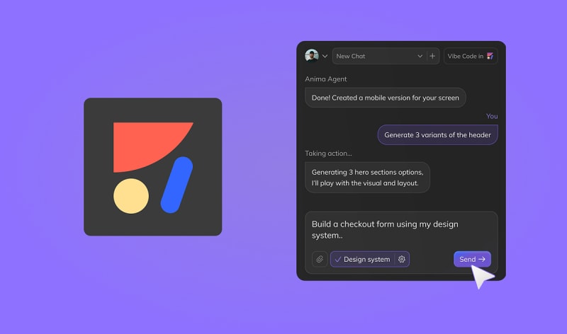 Anima Agent is a Figma plugin that uses AI (defaulting to Claude Sonnet) to generate UI designs from text prompts. Three practical scenarios are covered: creating a new mobile app design from scratch, generating variants of an existing design, and building screens using components from an existing design system. The tool