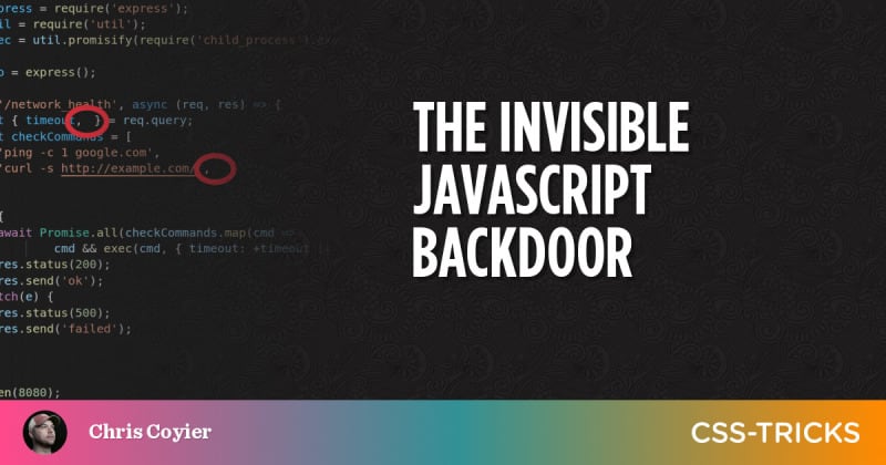 An interesting (scary) trick of an nearly undetectable exploit. Wolfgang Ettlinger: What if a backdoor literally cannot be seen and thus evades detection even from thorough code reviews?I’ll post the screenshot of the exploit from the post with the actual exploit circled.