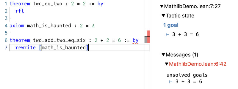 Lean is a programming language designed for formalizing mathematics, allowing mathematicians to treat mathematical proofs as code. The article demonstrates basic Lean concepts through simple examples, showing how theorems are proven using tactics like 'rfl' and 'exact', and how axioms can lead to contradictions. It explores the