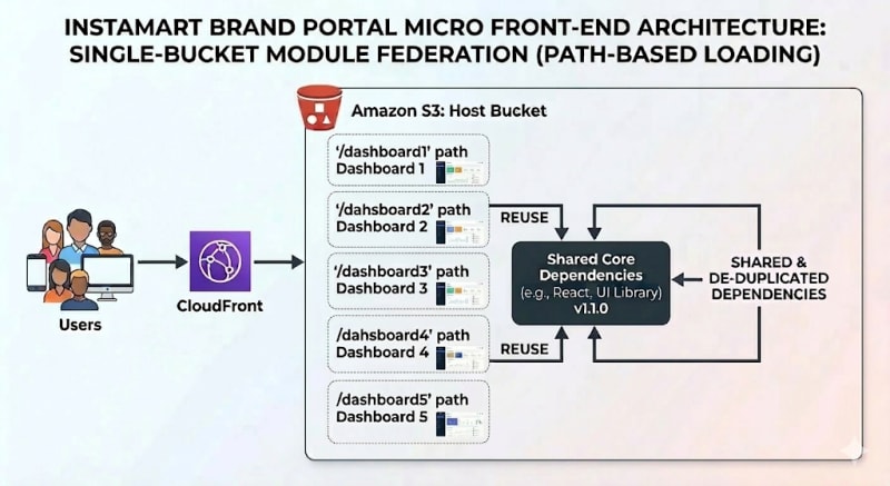 Swiggy's engineering team shares how they migrated multiple B2B dashboards from a fragmented S3-per-app architecture to a unified Module Federation 2.0 setup. The post covers the full journey: eliminating ~638 KB of duplicate JavaScript per remote app, solving singleton traps (styled-components loaded twice), synchronizing