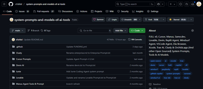 A GitHub repository collecting system prompts from AI tools has grown from 12,000 to 70,000 stars, becoming a collaborative library for understanding AI behavior. System prompts are configuration files that define AI model behavior, personality, and ethical boundaries before user interaction. The project provides transparency