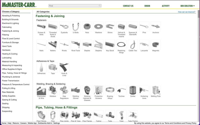 McMaster-Carr is an industrial supply company that sells nuts, bolts, bushings, bearings and bearings. For nearly every part, they have a CAD file that you can instantly download into your 3D models. McMaster even has extensions for popular CAD programs which allow you to import part files directly, instead of using their website.