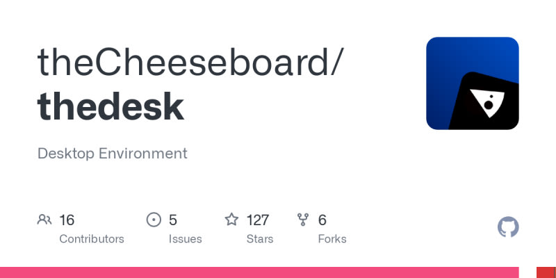 theDesk is a desktop environment built on Qt libraries. It includes Qt 5 modules, the-libs, libtdesktopenvironment, Xlib, xorg-libinput, and NetworkManager-Qt. The default widget theme is contemporary-widgets.