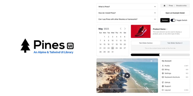 Pines UI Library is an open-source project available on GitHub, easy to set up locally with NodeJS and http-server. It is licensed under the MIT license. For support and questions, users are encouraged to visit the DevDojo discussions section.