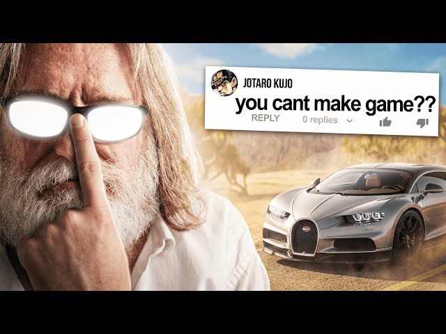 A developer documents their 24-hour challenge to create a racing game in Unreal Engine 5. Starting with custom vehicle physics that proved too difficult, they switched to Unreal's Chaos Vehicle system. The process included rigging a Bugatti 3D model in Blender, building a race track with splines, tuning vehicle performance to
