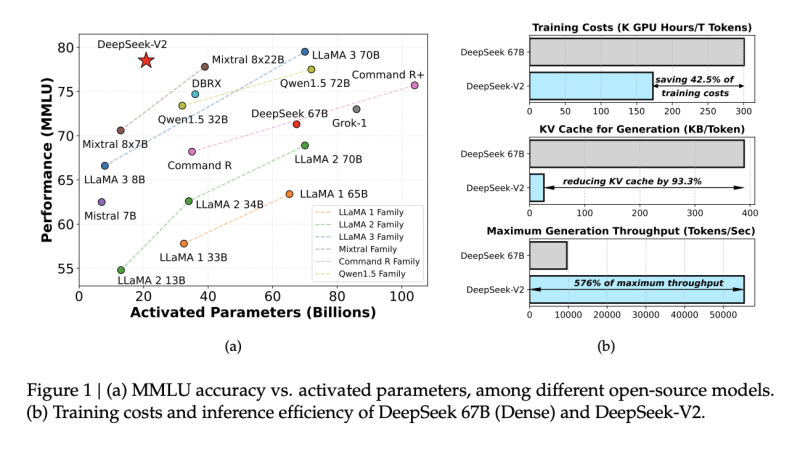 DeepSeek-AI introduces DeepSeek-V2, a language model that reduces computational costs and improves performance. It leverages a Mixture-of-Experts architecture and Multi-head Latent Attention mechanism. DeepSeek-V2 exhibits a significant decrease in training costs, Key-Value cache size, and an increase in generation throughput.