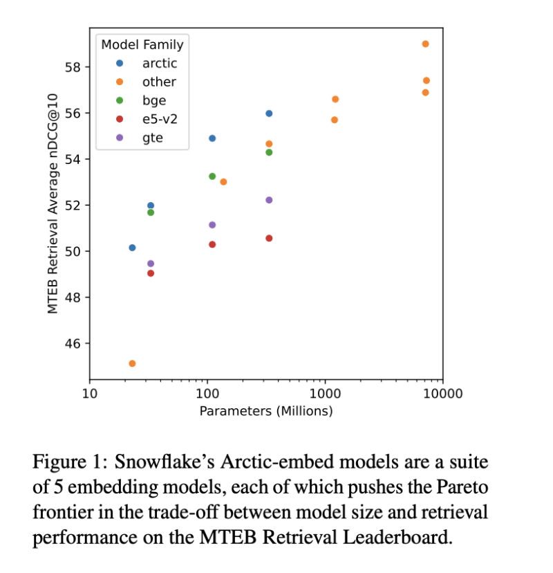 Text embedding models have become fundamental in natural language processing, enhancing efficiency and effectiveness. Arctic-embed models by Snowflake Inc. optimize retrieval performance without scaling model size or complexity, achieving superior accuracy in text retrieval. The models use pre-trained language model backbones