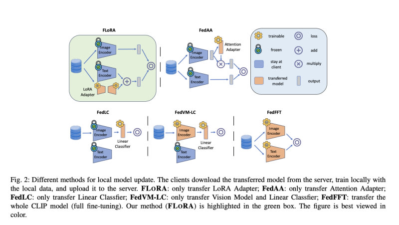FLORA is a novel machine learning approach that leverages federated learning and parameter-efficient adapters to train vision-language models (VLMs). It addresses the challenges of privacy and scalability by allowing models to be trained across a distributed network of devices while keeping data locally. FLORA uses Low-Rank