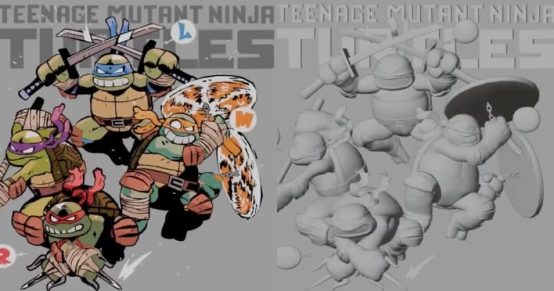 Matthew Leung created a 3D recreation of the Teenage Mutant Ninja Turtles main characters, translating rariatoo's stylized 2D artwork into 3D while maintaining comic book aesthetics. The piece demonstrates how to adapt toon-inspired features into three-dimensional character models. The article also showcases other TMNT fan art