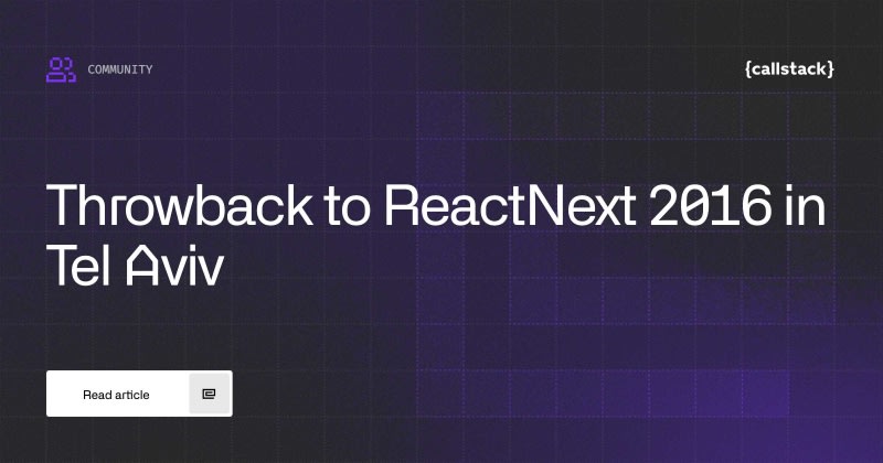 A recap of the ReactNext 2016 conference in Tel Aviv, where Callstack's Mike Grabowski presented on building a fully-fledged media player in React Native. Highlights include Eric Rozell's talk on bringing new platforms to React Native, a mention of rnpm (an open source package manager for native modules co-created by