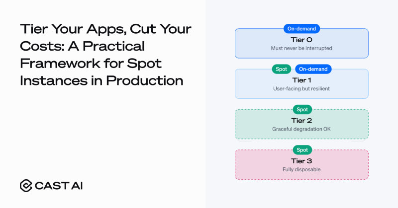 Spot Instances can reduce cloud compute costs by up to 90%, but interruption risks often limit their use to non-production environments. This guide presents a tiering framework that categorizes applications by criticality (Tier 0-3) and assigns appropriate On-Demand/Spot instance mixes. Using Cast AI's Pod Mutations with