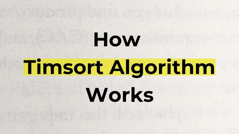 Timsort is a hybrid sorting algorithm combining merge sort and insertion sort, designed to exploit existing order in real-world data. The article walks through how Timsort divides input into 'runs', sorts each with insertion sort, then merges them. Key optimizations include: detecting and reversing descending runs before