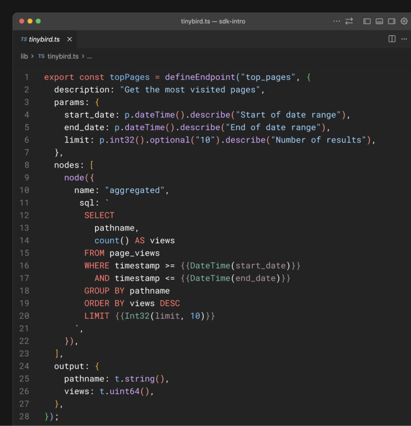 Tinybird released a TypeScript SDK that lets developers define datasources, pipes, and endpoints as TypeScript code instead of custom DSL files. The SDK provides type-safe ingestion, autocomplete for queries, compile-time validation, and works with coding agents like Cursor and Claude. It includes a modern CLI with hot reload,