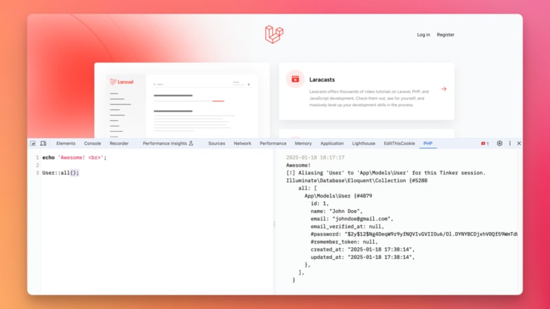 A Chrome extension named php-ext allows users to iframe a PHP console using Spatie's Laravel Web Tinker package. By following a series of steps, users can load this extension in Chrome's developer tools and execute Laravel/PHP code directly from the console.