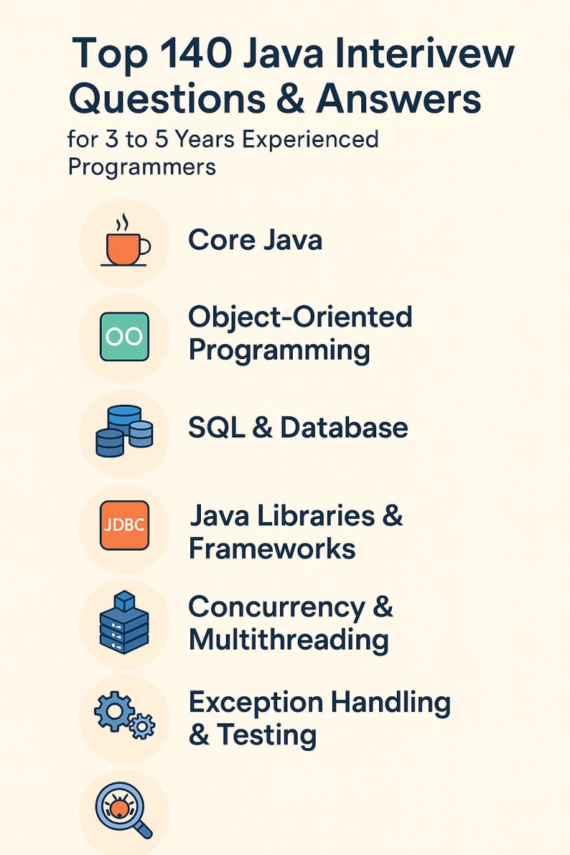 Top 140 Java Interview Questions Answers for 3 to 5 Years Experienced Programmers