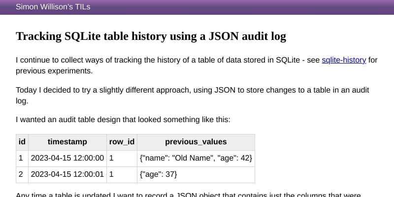 Learn how to track the history of a table in SQLite using a JSON audit log. Explore the audit table design and the construction of JSON objects using SQLite triggers.