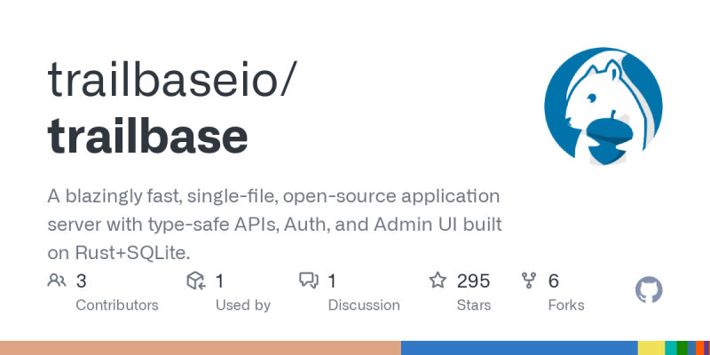TrailBase is an open-source, single-file application server known for its speed and type-safe APIs. Built on Rust and SQLite, it includes built-in authentication, an admin UI, and supports sub-millisecond latencies. The server is highly extensible, supporting mobile, web, and desktop applications, and boasts simple
