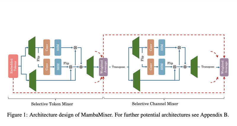 The MambaMixer architecture introduces data-dependent weights and a dual selection mechanism to efficiently process multidimensional data, improving scalability and performance. It has specialized applications in image-related tasks and time series forecasting, achieving competitive performance and surpassing other models in certain configurations.