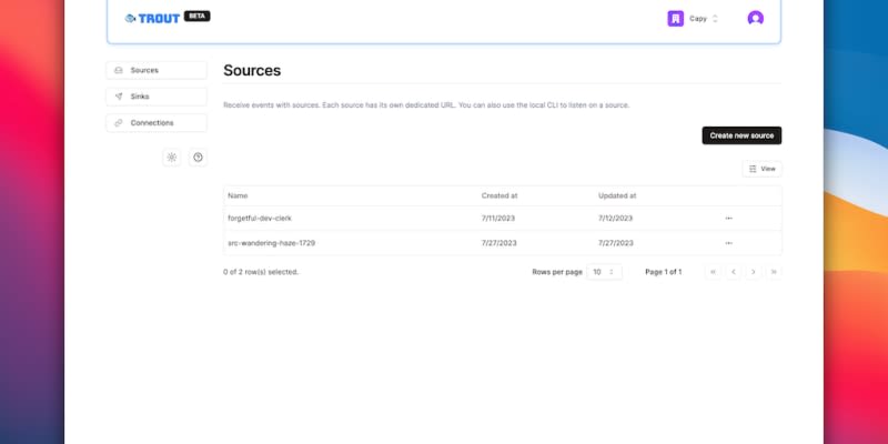 Trout - Webhooks made easy. Use the Trout CLI to listen to sources locally and forward events to your locally running processes. This is Trout's first launch.