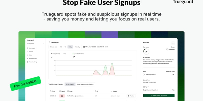 Trueguard offers advanced protection for SaaS applications by automatically blocking temporary emails, free-tier abusers, and automated bots, ensuring that malicious users are kept at bay.