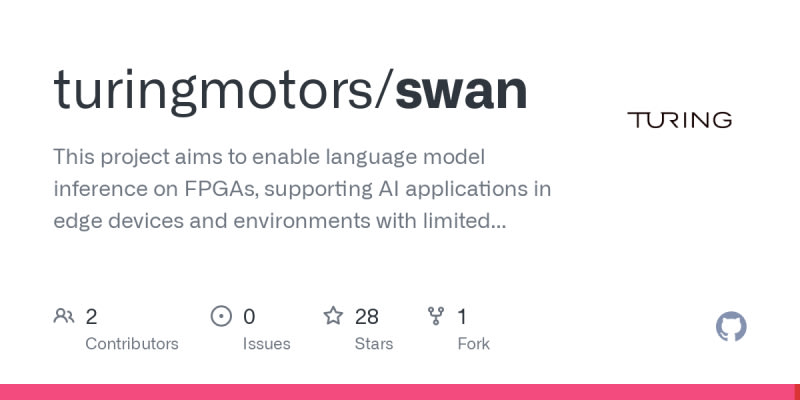 Swan is an OSS project that enables language model inference on FPGAs, supporting AI applications in edge devices and environments with limited resources. It is versatile, scalable, and lightweight.