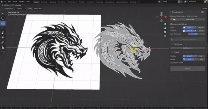 TraceGenius Pro is a Blender add-on that allows artists and designers to easily convert 2D images into detailed 3D geometry. It offers drag-and-drop functionality, the ability to extract outlines or faces, and options for creative flexibility and intricate detailing. The add-on is available for $5.99 on Blender Market.
